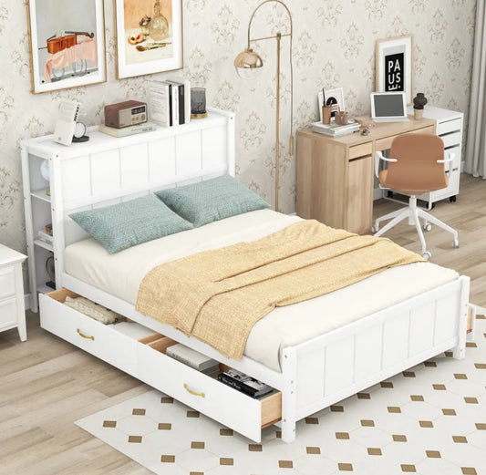 Twin Size Loft Bed with Cabinet and Shelf - White