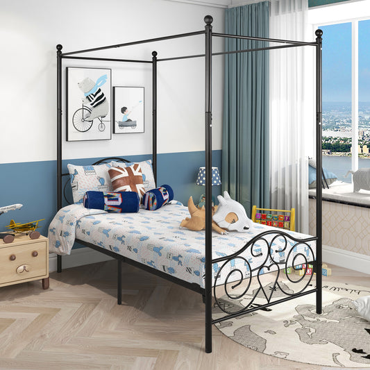 Metal Canopy Bed Frame W/ Vintage Style Headboard