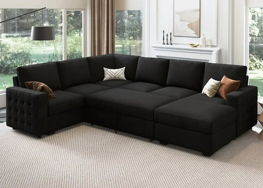 Velvet Sectional Couch + Storage Chaise and Pull out Bed