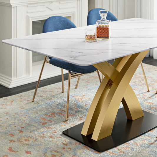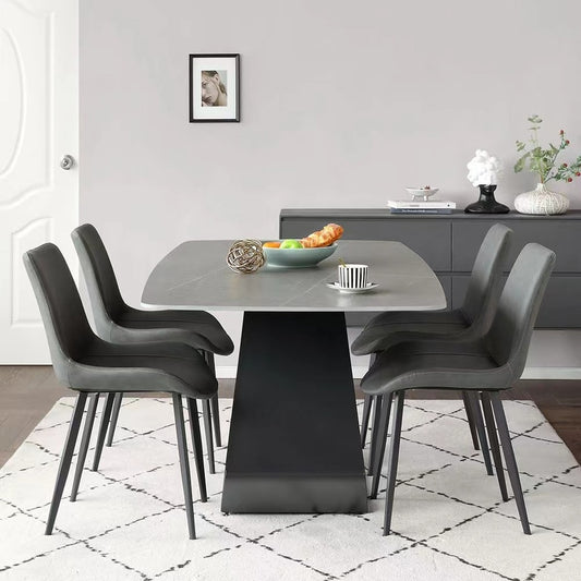 Gray Sintered Stone Dining Table with Carbon Steel Base