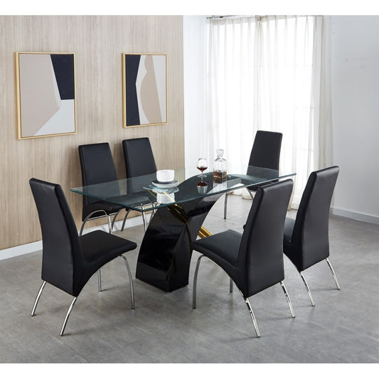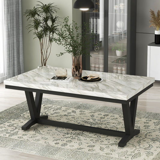 7-piece Dining Table Set with 1 Faux Marble Table and 6 Upholstered Chairs