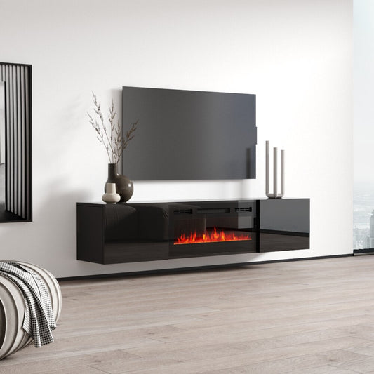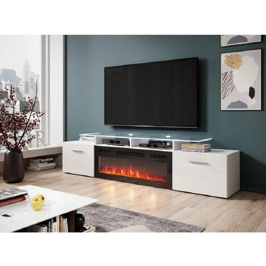 Modern High Gloss TV Stand + Fireplace