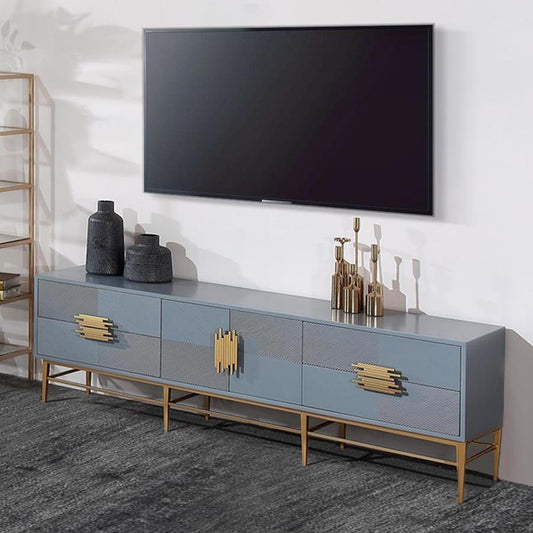 Blue TV Cabinet with 4 Drawers and 2 Doors