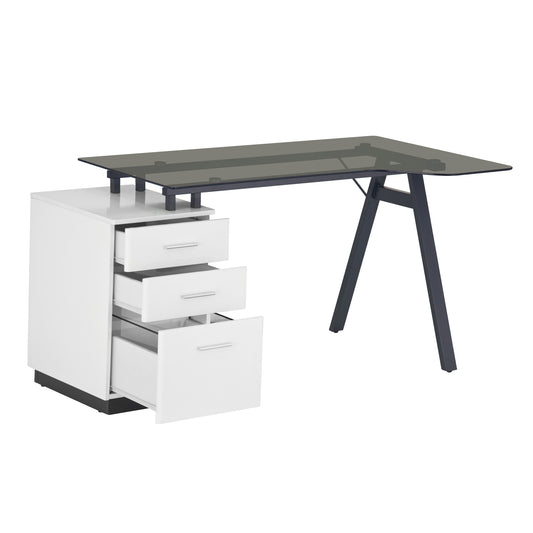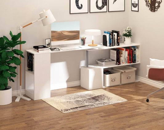 Weißer drehbarer Schreibtisch mit Ablage, klares Glas