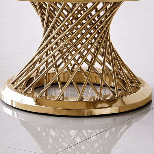 Mesa de centro redonda de mármol con base de acero inoxidable con acabado de espejo dorado